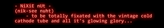 This site's content is the © Copyright 2013 - ∞ of Nixie Nut ALL RIGHTS RESERVED